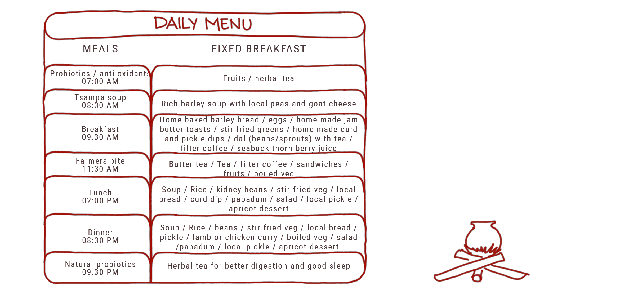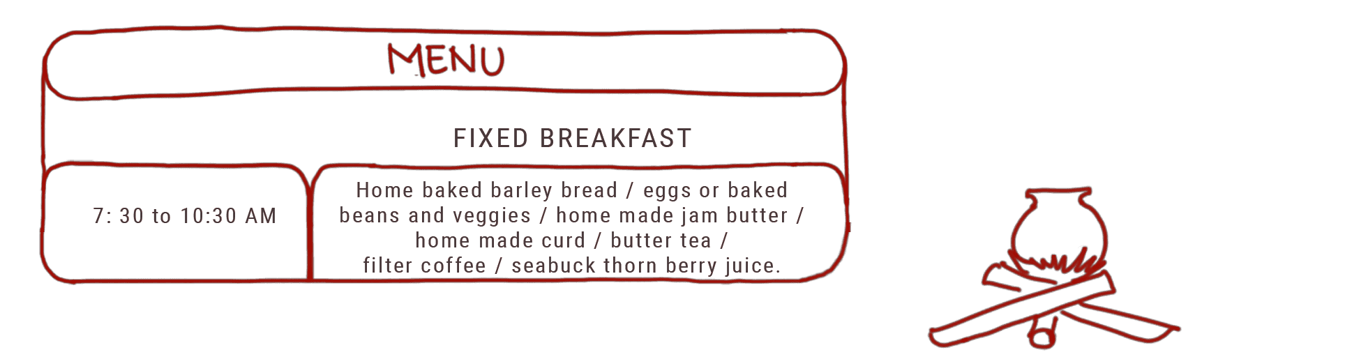 Day 02: 7 AM our guests will be woken up to diced fruits with warm herbal tea. We